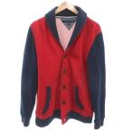トミーヒルフィガー TOMMY HILFIGER ジャケット カーディガン XL 紺 ネイビー 赤 レッド ショールカラー 長袖 ロゴ刺繍 ボタンフロント