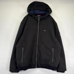 古着 トミーヒルフィガー TOMMY HILFIGER ナイロンジャケット フルジップ 中綿 シェル ワンポイント 2XL ブラック メンズ