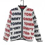 【美品】トミーヒルフィガー ニットジャケット 白×ネイビー×レッド ロゴ総柄 裏地付 レディース M ゴルフウェア Tommy Hilfiger Golf