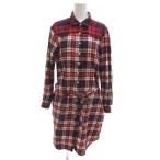 トミーヒルフィガー TOMMY HILFIGER シャツワンピース ロング S 赤 レッド チェック柄 長袖 ウエストリボン ECG001 /KR ■ECG001