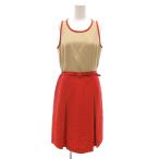 トミーヒルフィガー TOMMY HILFIGER ノースリーブワンピース ひざ丈 M ベージュ 赤 レッド ラウンドネック /NL ■GY06 レディース