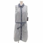 未使用品 トミーヒルフィガー TOMMY HILFIGER タグ付き シャツワンピース M 水色 ライトブルー 切替 シャツカラー ノースリーブ