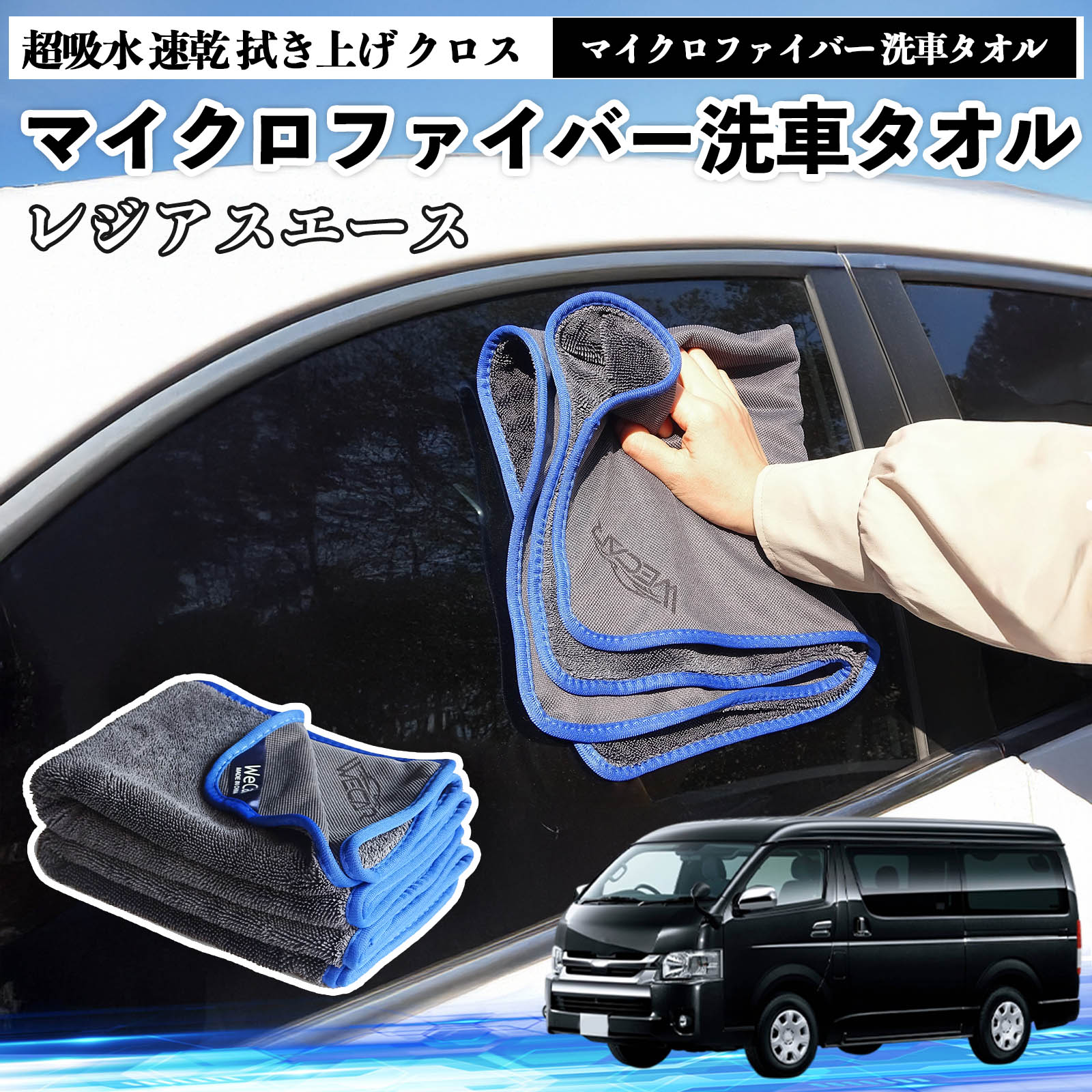 トヨタレジアスエースマイクロファイバー 洗車タオル 超吸水 速乾 拭き上げ クロス 車用 大判 傷防止 糸くずなし 高密度 吸水力抜群 ガラス拭 3枚 WeCar