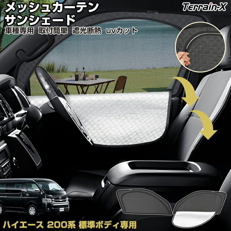 \マラソン限定 P5倍+全品5%OFF/「車種専用 2in1」ハイエース 200系 サンシェード メッシュカーテン 標準 車 レジアスエース 車用 サンシェード フロントサイド UVカット 日除け 遮光 日よけ カー シェード HIACE ハイエース 200系 カスタムパーツ アクセサリー