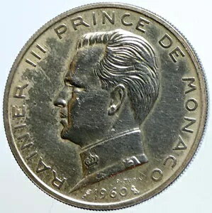1960 モナコ国王レーニエ 3 世クラウン オールド シルバー 5 フラン コイン TRIAL STRIKE i113430
