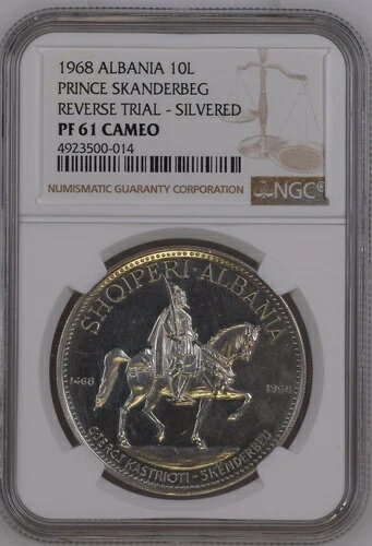 1968 アルバニア 10 レケ 「リバース トライアル - シルバー」 NGC PF 61 カメオ *SKANDERBEG*
