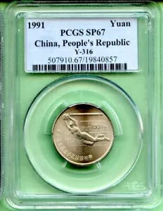 中国 PCGS SP 67 トライアル標本 1 元 1991 女子ワールドカップ KM -PN7