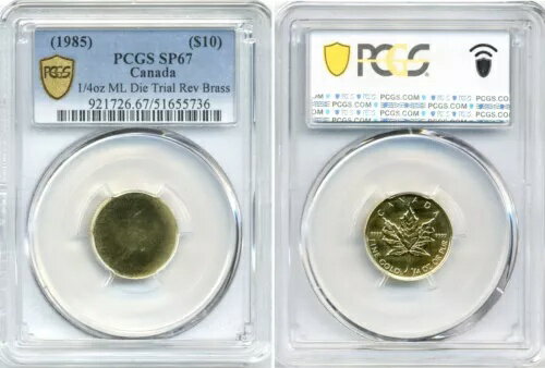 ダイ・トライアル(1985年)カナダ 1/4オンス 10ドル金貨 ML 真鍮 裏面 - PCGS 標本 67