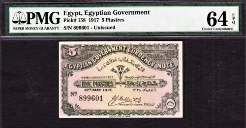 エジプト 5 ピアストル 1917 未発行 (グリーン カラー トライアル) Pick-158 CH UNC PMG 64 EPQ
