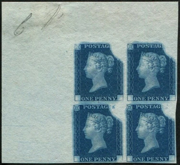 1840 1d レインボー トライアル (状態 3)「ディープ ブルー」(白いウェーブ紙に追記あり)
