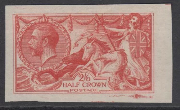 キング ジョージ 5 世 1913年 ウォーターロー ハーフ クラウン カラー トライアル、非糊付け版にローズレッド色...
