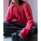 ニット セーター シアーモヘアタッチロングニットプルオーバー レディース