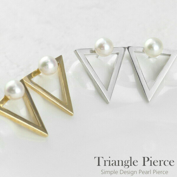【10%OFF】ピアス k10 トライアングル 三角形 一粒パール アコヤ真珠 10金 ゴールド 10k 可愛い おしゃれ 大人 シンプル 人気 誕生日 記念日 プレゼント ブラックフライデー