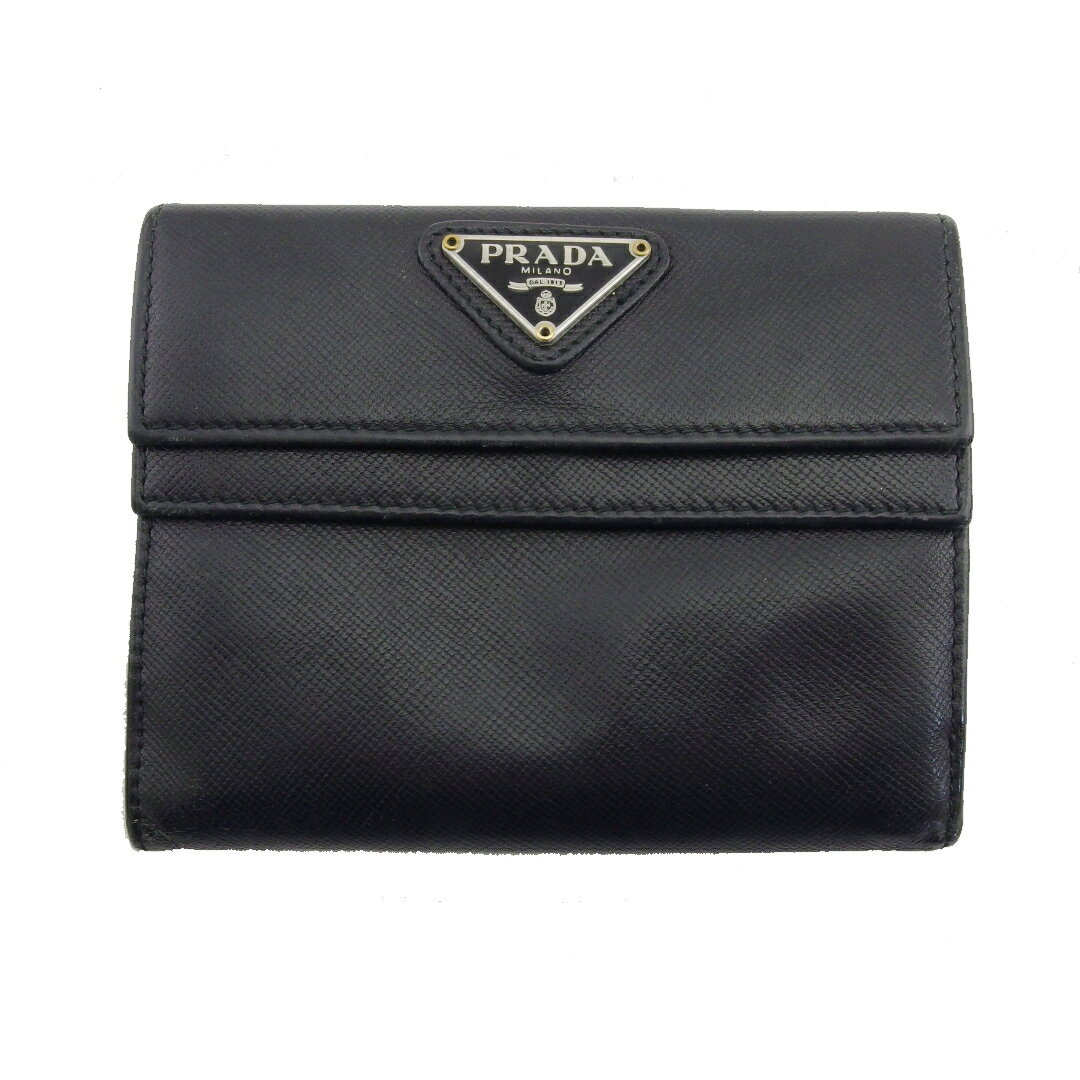 【Fashion Special Fair 30%OFFクーポン】プラダ PRADA 三つ折り財布 トライアングルロゴ ブラック レディース 中古 ブランド ハイブランド ヴィンテージ