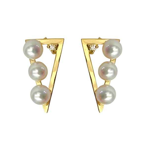 【10%OFFクーポン利用で】アコヤ真珠 トライアングル 18金 トリプル 3連 3粒 イエローゴールド ピアス ダイヤモンド 両耳 パール 本真珠 スタッドピアス シリコンキャッチ