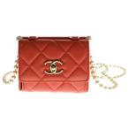CHANEL シャネル マトラッセ トライアングル フェイクパール チェーンショルダーバッグ レッド ラムスキン AP4006