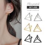 【メール便送料無料】 ピアス イヤリング 金属アレルギー 対応 シンプル レディース 樹脂オメガ 日本製 キュービックジルコニア トライアングル 捻り ニッケルフリー 16Kコーティング ピアスに見える 結婚式 上品