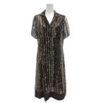 トラサルディ TRUSSARDI シアーワンピース 半袖 ひざ丈 ペチキャミワンピース 総柄 40 茶 ブラウン /GV ■GY60 レディース