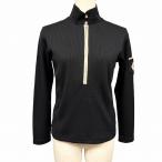 トラサルディ ゴルフ ワッフルカットソー ハーフジップ 長袖 袖にポケットとロゴ ポリ100% 40 ブラック 黒×ベージュ レディース