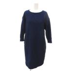 トラサルディ TRUSSARDI ワンピース ウール 40 青 ブルー 黒 ブラック ラウンドネック 長袖 /YJ レディース