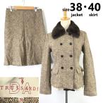 美品★TRUSSARDI/トラサルディ★シルク混/ツイード/スカートスーツ/セットアップ【上38/下40/レディース/茶】ダブルブレスト/着脱ファー/Jacket/skirt◆BJ059-a