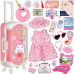 【並行輸入品】人形スーツケーストラベルセット、18インチの人形服とアクセサリー 旅行用枕26個、ユニコーンバッグ、サングラス、カメラ、コンピ