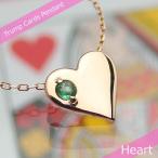 トランプハート天然誕生石ペンダント K10ピンクゴールド エメラルド ネックレスチェーン付き