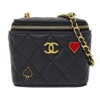 シャネル ショルダーバッグ スモール バニティバッグ AP3078 マトラッセ キャビアスキン ココマーク トランプ ブラック ゴールド CHANEL