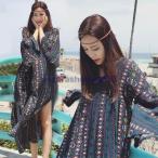 ワンピース トランペットスリーブ Vネック オーバーサイズ エキゾチック 夏ワンピース ルーズ 快適 体型カバー