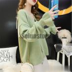 カーディガン Vネック セーター ルーズジャケット 女性 2021年秋 新商品 トランペットスリーブセーターカーディガン