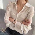 【10%offクーポン&P倍増】ブラウス レディース 長袖 シャツ 大きいサイズ トップス ブラウスシャツ シャツ シースルー トランペットスリーブ ショート キレイめ ナチュラル お洒落 可愛い SNS映え 新作 人気 おすすめ 大人可愛い エレガント お出かけ フェミニン