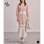 ワンピース レディース ニットワンピース 長袖 ミディ丈 トランペットライン 金ボタン カーディガントップス ディープカフス ボリュームスリーブ ハ