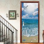 ドアステッカー トリックアート リゾート 海岸 夜明けの海 カモメ だまし絵シール 隠し部屋 部屋の壁紙 インテリア DIY