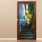 ドアステッカー トリックアート ヨーロッパ 路地裏 夕暮れ ノスタルジー だまし絵シール インテリア DIY