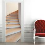 ドアステッカー トリックアート 螺旋階段 ナチュラル 木製 だまし絵シール インテリア DIY