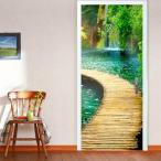 ドアステッカー トリックアート 森の渓流 川辺 フレッシュグリーン 木漏れ日 だまし絵シール インテリア DIY