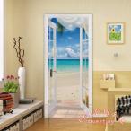 ドアステッカー トリックアート 白い砂浜 ビーチ 白い窓枠 南国 リゾート だまし絵シール インテリア DIY