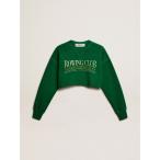トレーナー スウェット クロップド ラウンドネックスウェットシャツ コットン(グリーン) レディース