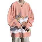 パーカー メンズ トレーナー フードなし プルオーバー 猫柄 韓国風 おしゃれ プリント 長袖 大きいサイズ ゆったり ストリート 春秋