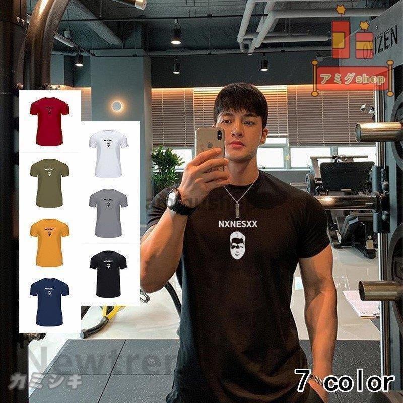 【SS限定★10%OFF!】 トレーニングウエア メンズ ジム 半袖 夏 半袖Tシャツ スポーツウェア 速乾 吸汗 フィットネス 筋トレ トレーニングトップス ホワイト レッド グレー カーキ ブラック M L XL XXL