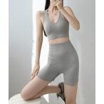 セットアップ レディース 半袖クロップド丈フィットネストップス+ショートパンツ 上下2点セット レディース
