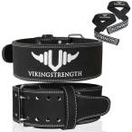 Vikingstrength トレーニングベルト パワーベルト リフティング 腹圧 筋トレ ブラックレザー&スウェ