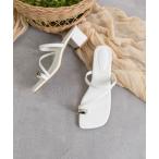 サンダル スクエアトゥトングチャンキーヒールサンダル レディース