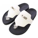 美品 HERMES エルメス ギャラリー Hモチーフ レザー トングサンダル レディース ブラウン 37
