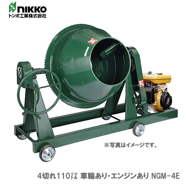 トンボ工業 グリーンミキサ NGM-4E 4切 エンジン式 モルミニ コンクリートミキサー 小型 建築 建設 土木用 園芸用 モルタル ミキサー 車輪あり 工業用機械 工業用 コンクリートミキサー機 モルタルミキサー ミキシング ブレンド 種もみ 培養土 園芸用培養土 肥料 飼料 日工
