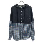 DISCOVERED ディスカバード 日本製 DENIME コラボ チェック 長袖 ドッキング シャツ パーカー 1 デニム地×ブルー系 ドゥニーム メンズ 古着 中古