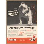 ゲインズ ブルドッグ レトロミニポスター B5サイズ 複製広告 ◆ Gaines ドッグフード 犬 BULLDOG USAD5-341