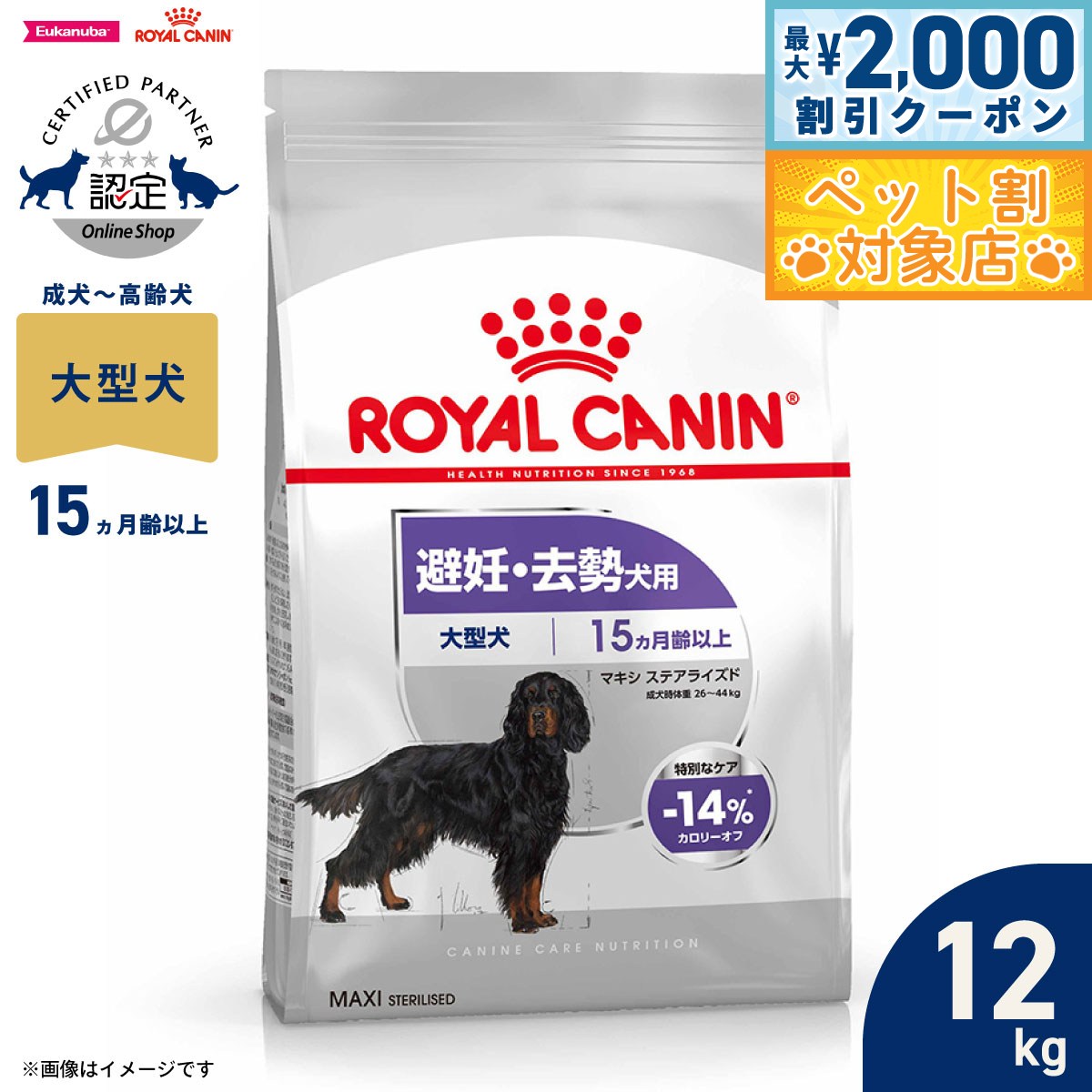 【0】 [正規品] ロイヤルカナン 犬ドライ マキシ ステアライズド 12kg避妊・去勢犬用 大型犬用 成犬~高齢犬用(生後15ヵ月以上) 太りやすい 体重管理 ドライフード ドッグフード ロイカナ CCN