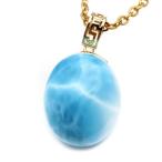 【動画あり】ドミニカ ブルーアンバー 青琥珀 琥珀 ネックレス ペンダントトップ 青色 未処理 楕円 オーバル 面カット 透明 シャンパンカラー レモン色 K18 一点物 琥珀屋 No 3507 天然石 パワーストーン
