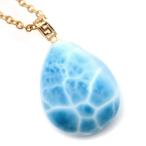 ラリマー ネックレス 天然石 しずく ドロップ ペンダント 18金 K18 ロイヤルクラス Srank スカイブルー ドミニカ産 パワーストーン 1点物 敬老の日 プレゼント
